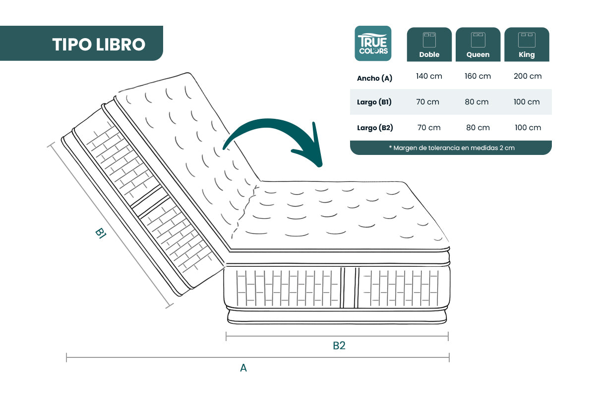 | Peso de producto | 100X190 = 30 kg, 120x190 = 35 kg, 140x190 = 41 kg, 160x190 = 47 kg, 200x200 = 56 kg |
