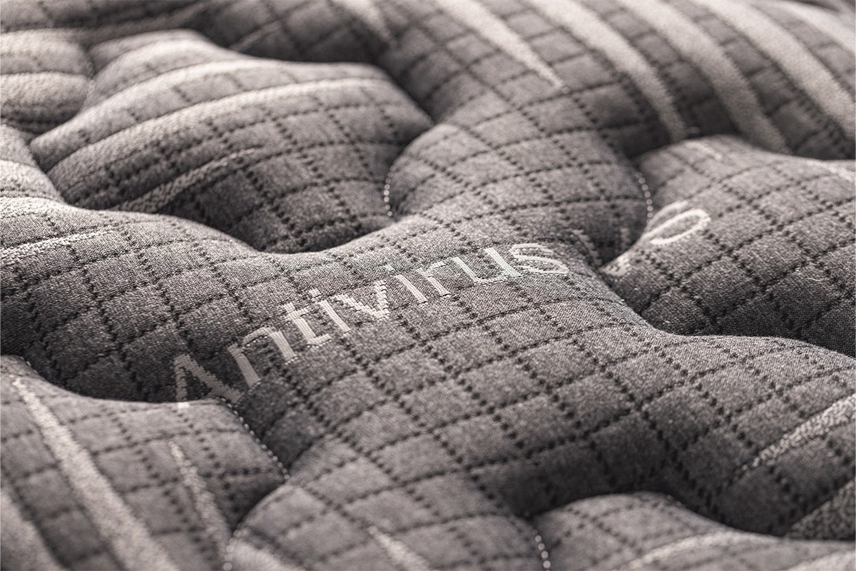 Tela tejido de punto 290 gr con tratamiento ANTIVIRAL, que ayuda a proteger contra agentes generadores de virus respiratorios 🛡️. Además, es hipoalergénica y antibacterial, manteniendo tu descanso limpio y fresco.