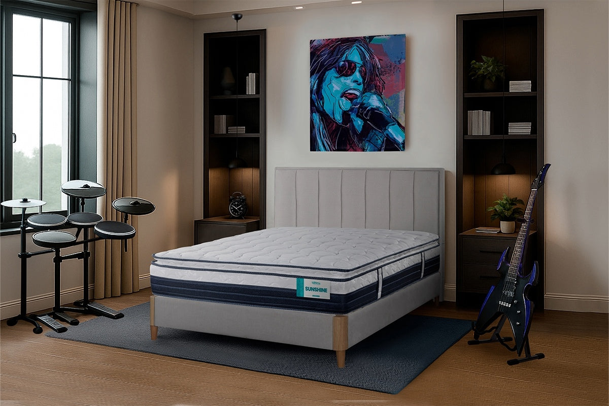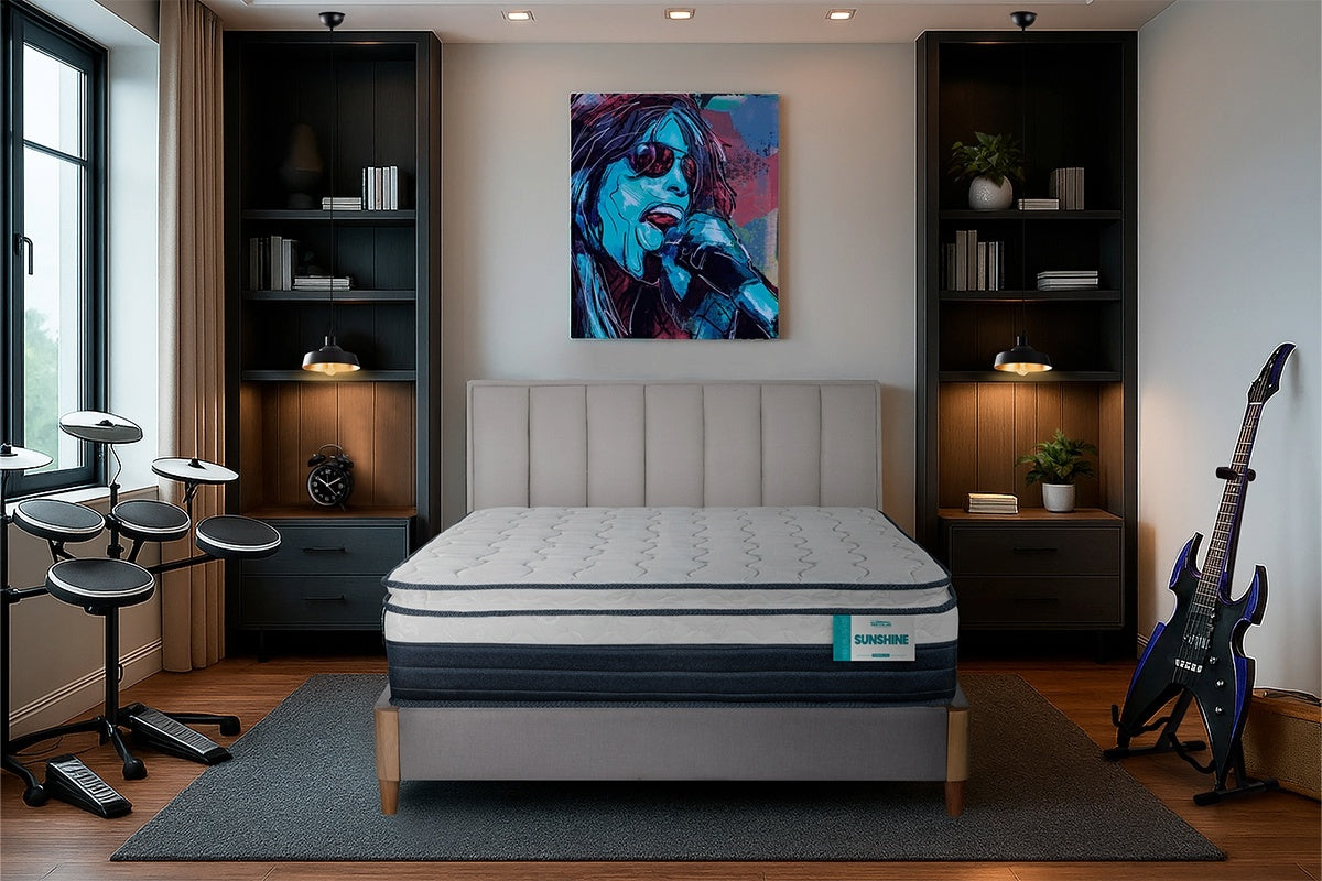 Duerme como una estrella de rock y despierta con la energía de un escenario lleno. El descanso nunca sonó tan bien. 🎶
