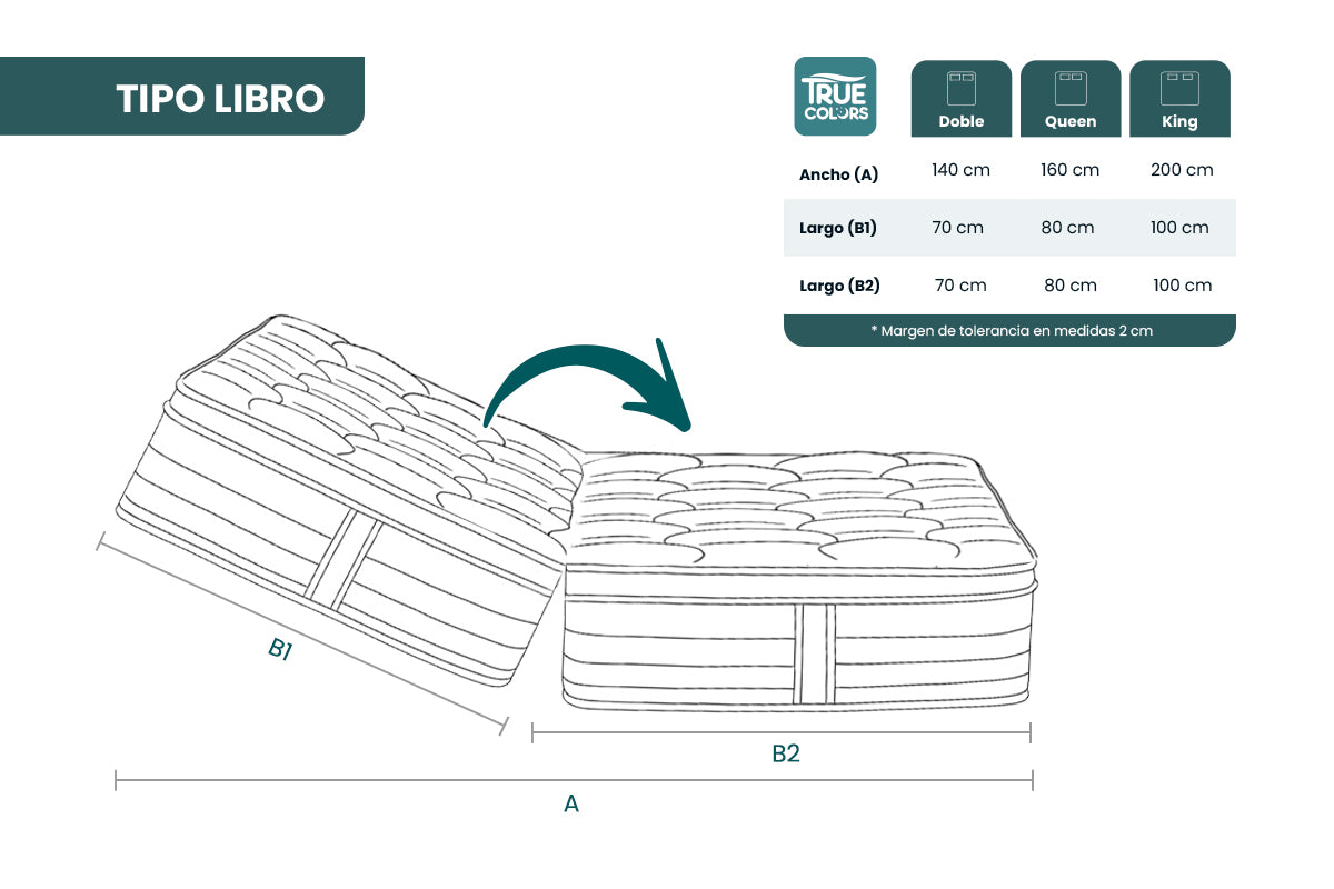 | Peso de producto | 100X190 = 29 kg, 120x190 = 34 kg, 140x190 = 39 kg, 160x190 = 45 kg, 200x200 = 55 kg |