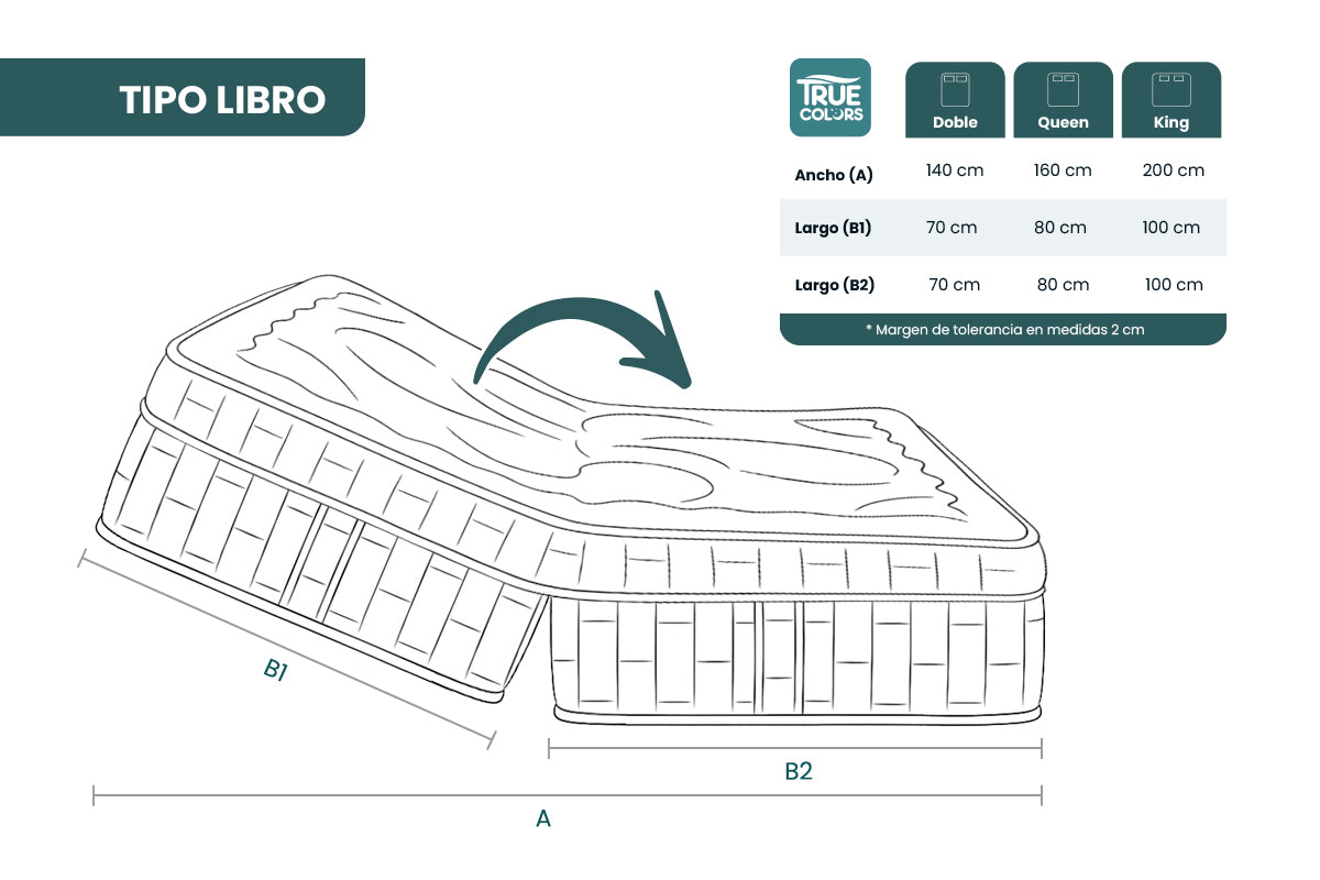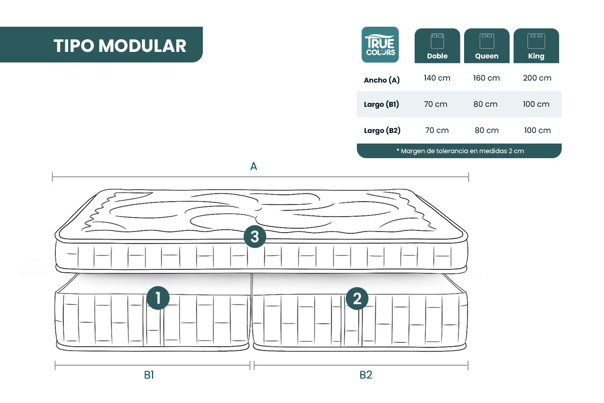 Descubre un descanso de otro nivel con la exclusiva tecnología DUO POCKET de TRUE COLORS. Combina resortes pocket y mini-pocket en el pillowtop para una sensación de movimiento independiente, reduciendo las molestias y maximizando la ergonomía.
