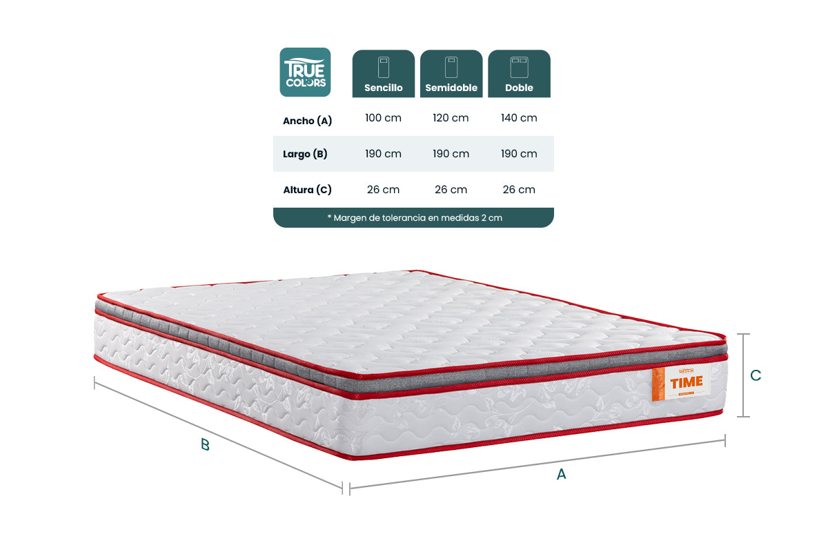 | Soporte perimetral | Resortes laterales puntuales y esquineros en polyspam que brindan mayor soporte en el contorno del colchon |