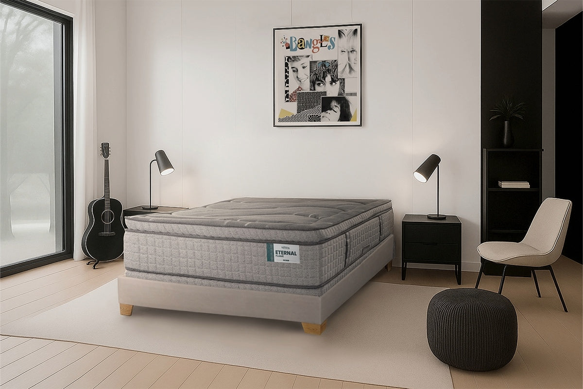 * Colchón tecnología de resortes pocket encapsulados una zona, en acero de alto carbono que proporcionan un alto nivel de ergonomia y resistencia, minimizando las molestias en los puntos de presión del cuerpo y reduciendo la sensación de movimiento gracias a la acción individual de los resortes.